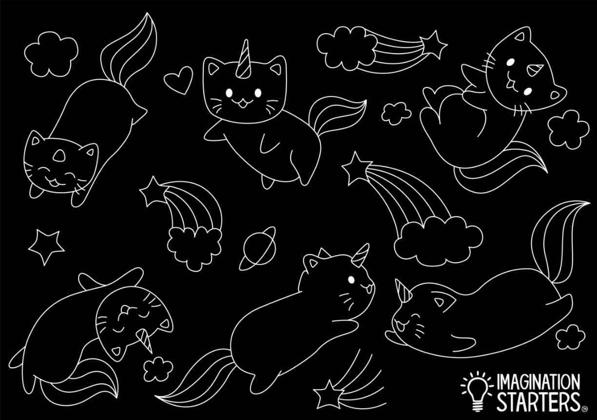Den har en side for fri kunstnerisk utfoldelse og en side for vakre motiv. Denne rengjøres enkelt med baby wipes eller fuktig klut og kan brukes igjen og igjen!